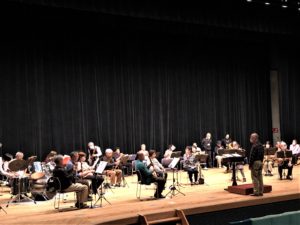 続く第2部で受講生と指導にあたってきた同バンドが共演し、迫力あるシニアのブラスを会場に響かせる。