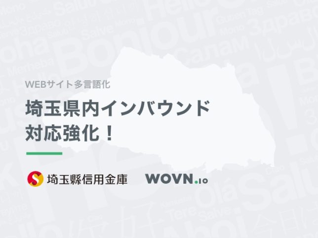 埼玉縣信用金庫のお取引先企業に対し、WEBサイト多言語化開発ツール「WOVN.io」の紹介を通じて、インバウンド対応・海外への販路拡大等をサポートしてまいります。