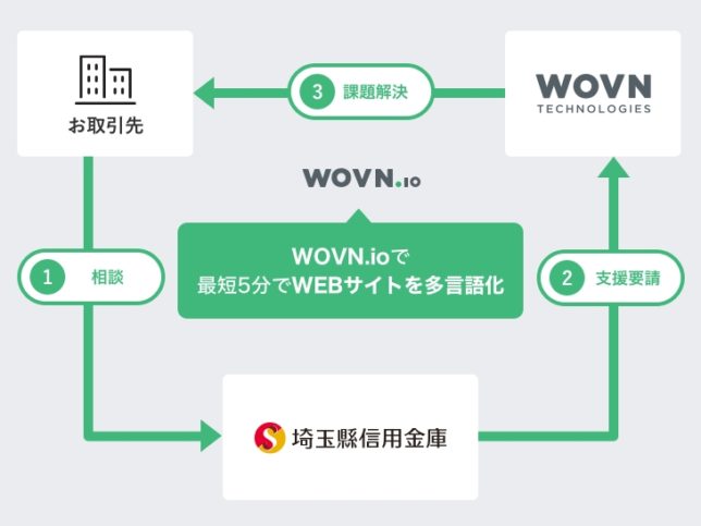 WEBサイト多言語化サービス「WOVN.io(ウォーブンドットアイオー)」を運営するWovn Technologies株式会社(東京都港区、代表取締役:林鷹治、以下「Wovn Technologies」)は埼玉縣信用金庫(埼玉県熊谷市、理事長:橋本義昭)と「WOVN.io」の紹介についてビジネスマッチング契約を締結しました。なおWovn Technologiesが信用金庫と提携するのは、本件が初となります。