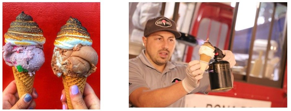 アイスクリームの上にマシュマロを絞り、バーナーで焦がすアイスクリームは、特に女性に大人気とのことです。