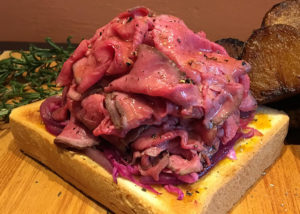一例を見ていくと、パリの熟成肉店がプロデュースするフレンチレストラン「Cellar Fête (セラフェ)」が出店。こんなローストビーフ山盛りな肉サンドを提供するとのことです!