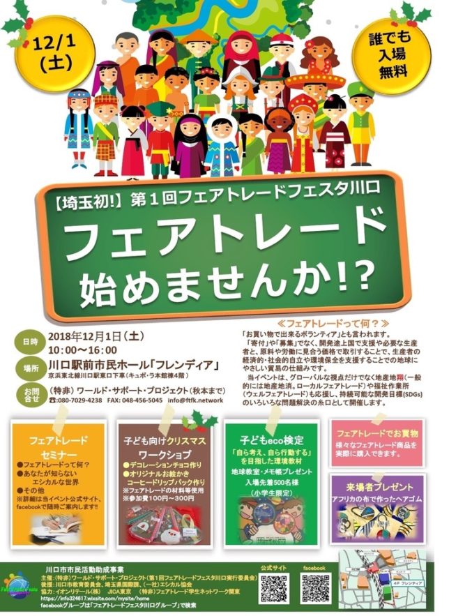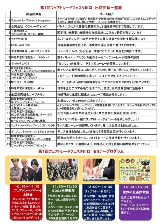 そういうことがあってなのか、そんな川口市でフェアトレードを推進する県内企業や団体によるフェアトレードフェスタが埼玉県内で初めて開催されます。