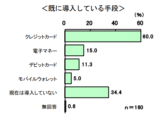そして導入済・導入予定の事業所に対して既に導入している決済手段を聞いたところ、最も多いのはクレジットカード(60.0%)という結果になりました。