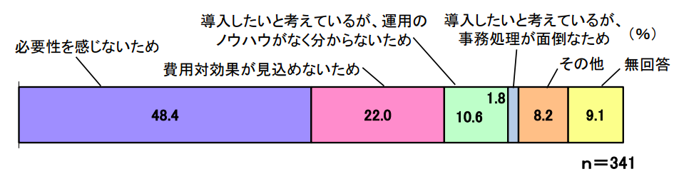 必要性を感じないが48.4%と最も多く、費用対効果が見込めないという声も多く挙がっています。