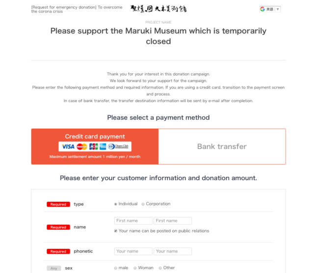寄付は¥1,000以上から受け付ける。