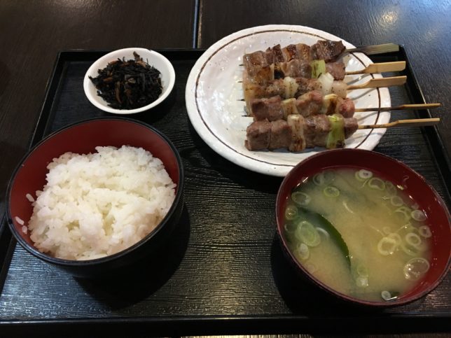 今回はやきとり5本にご飯とお味噌汁がついた、やきトン定食(税込¥1,265)を注文。