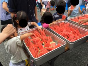 一通り割った後は切ったスイカを振る舞います。こどもも大人もたくさん召し上がっていらっしゃいました。
