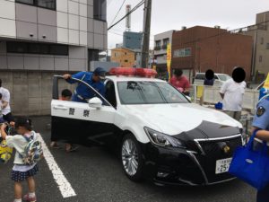 こちらはパトカー。運転席はもちろん、あまり乗りたくない(?)後部座席に乗ることもできました。