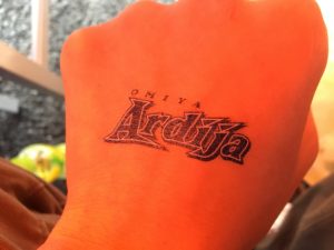 私もこんな風に手の甲に貼って、いかがですか~なんてやってましよ