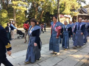 神主さんの先導で舞伝へと向かわれる一行ですが、清水園社長で埼玉政財界人チャリティ歌謡祭でもお馴染みの清水志摩子氏をはじめ、さいたま観光大使のあらい太朗(アロハ太朗)氏、さらに大宮アルディージャの森正志社長など、錚々たる面々が参列されているようです。