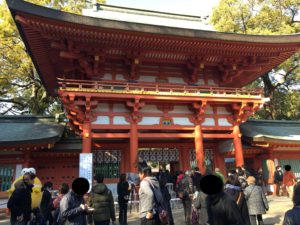 そして豆撒きが執り行われる舞伝へとつながる楼門。こちらも非常に多くの参拝客が詰め掛けていました。