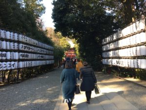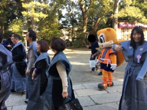 休日ということや小春日和で好天に恵まれたこともあり、特別年男・年女による豆撒きの様子を一目見ようと多くの参拝客が神社境内へと向かっていきます。