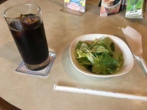 まずはサラダとアイスコーヒーが