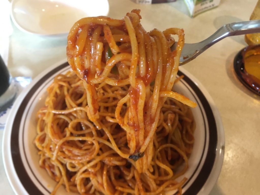 うん、トマトソースの甘さとほのかに感じる辛みでいい感じのナポリタンですね!