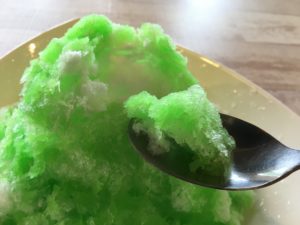 イチゴ・マンゴー・レモン・ブルーハワイ・メロンという5種類のシロップを選ぶことができ、他に黒糖あずき抹茶などリッチテイストもある。
