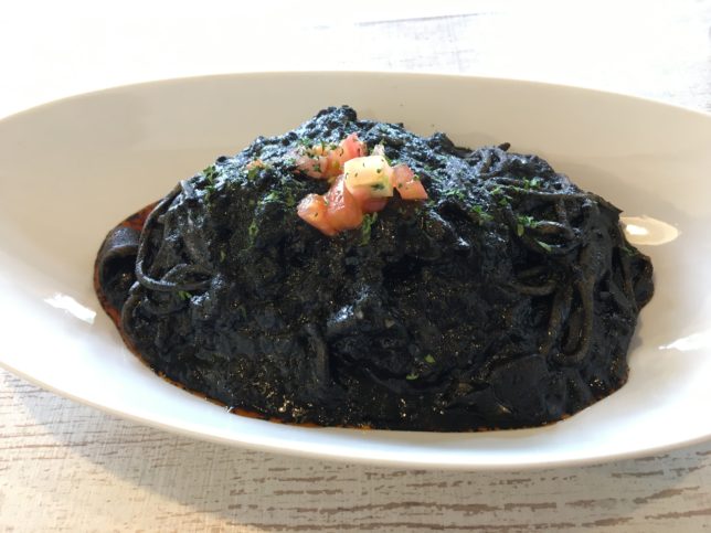 トマトソースをベースにイカ墨で和えており、同伴者とシェアするのにも最適なメニューだ。