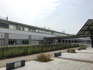 徒歩で行くことも不可能ではないが、同駅から両地区を結ぶ市のシャトルバス「はにぽんシャトル」を利用した。