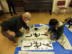 実際に指導にあたった同センター会員の男性は「みんな真面目にやっていた」と生徒・児童を労い、「書道に少しでも興味を持ってくれれば」と述べた。健康第一が新年の抱負だが、子どもと接していると自身にとっても刺激になってくるという。