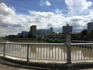 同橋から同川を臨む。川の音や流れがより感じられ、川岸からはまた違った光景が見られる。