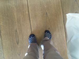 入る前に玄関で靴を脱ぎ、靴は玄関で配布している袋に入れて携行しましょう。