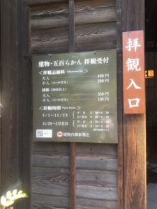 - 拝観料:大人¥400,小・中学生200円 (20人以上の団体は各¥50引)