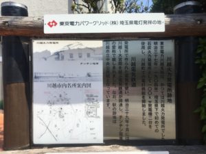同地の東京電力の前身である川越電灯が設立にかかわっていたことはお話ししたとおりですが、なんとこの近くが川越側の終着点だったとのこと!