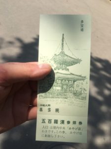 この半券を山門の右手にある売店で差し出すと、境内の名物五百羅漢を見物することができるんですよ!
