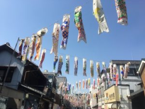 もうじきゴールデンウィークのこどもの日が控えていますが、それに合わせて通りにも、たくさんのこいのぼりがかかっていますね!
