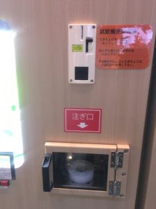 自販機は、好きな銘柄を選んで、注ぎ口に専用のおちょこをセッティングするスタイルです。どの銘柄にしようかな。