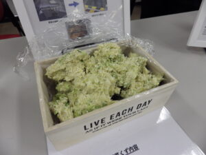 シンフォニージャパン(同市赤井、平石眞理子代表取締役社長)は、野菜の加工場から出る野菜クズを9割近くまで削減できる減容脱水機「ジャイアントごみ太郎」を紹介。