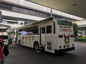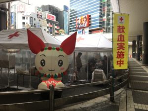 そして駅のエスカレーターを降りて西口ロータリーで今回の目玉となる献血を受け付けていました。