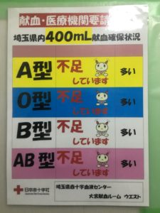 エレベーターの中にも表記がありましたが、どの型も血液が不足しているようですね…。