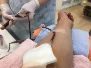 そうして献血を行う6階に移り、医師の方による問診、さらには看護師さんの立会いの下献血に先立って採血を行います。