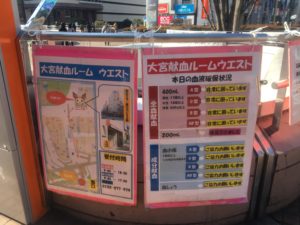 イベントカレンダーにもあるように毎週日曜日には東口にも献血車がやってくるのですが、今回は常設の大宮献血ルームウエストで献血を行おうと思います!