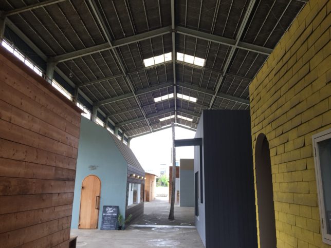 この倉庫、中に入るとこんな風に小さな建物がたくさん建っていて、まるでショッピングモールのようになっているのです。