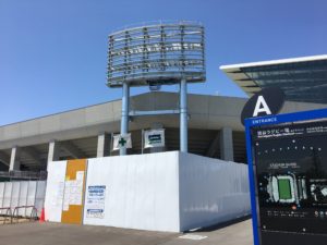 この投稿にもあるように北側には1基あるのですが、大会を見越して増設しているのだそう。これならどの観客席からも見やすくなりそうですね。
