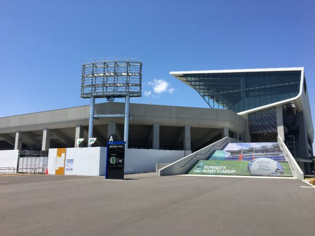 市街地に戻る途中、開催が楽しみなだけに思わず熊谷ラグビー場へ寄り道。