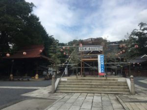 特徴的な灯篭が掛かっている同門を通り過ぎると、正面にあったのは盆踊りの舞台。