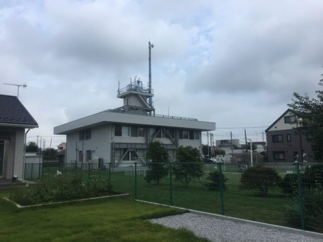 白い柵で囲われた場所になにやら機器類が立っていますが、こちらで気温や降水量を観測しています。いわゆるアメダスっていうやつですね。