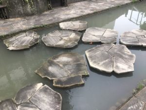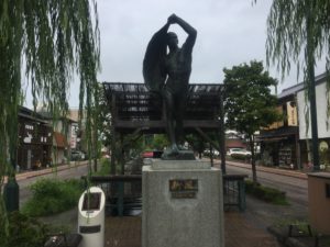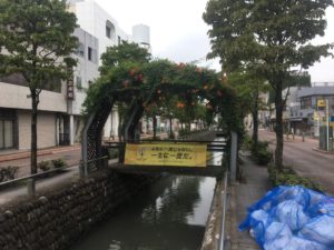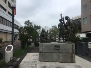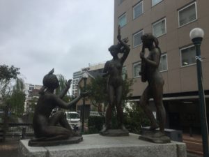 古くから清らかな水が洗い物や水遊びなど近隣住民の生活用水となっていた同川ですが、1970年代に入ると「水と緑と彫刻のプロムナード」として、うちわ祭りなどのイベントも行われる広場や彫刻像が設置され、市民の憩いの場として整備されることになりました。