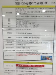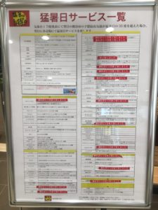 前日17時の熊谷地方気象台発表の翌日の予想最高気温が35度を超えると、翌日には猛暑日サービスとして各売り場でお得なサービスを実施しているようです!