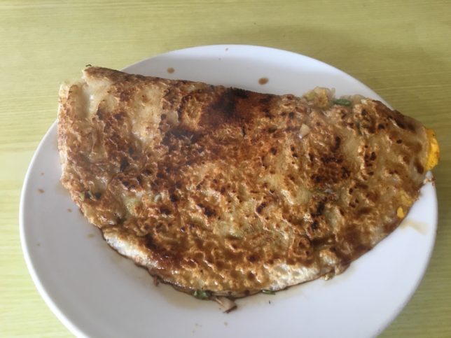 油を引いた鉄板で水溶き小麦粉を焼き上げ、お好み焼きとクレープの中間とも呼ばれるフライ。