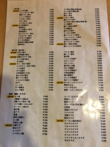 そしてこちらが同店のお品書きなのですが、とにかくメニューが多い!!ざっと見るだけで120はあります。