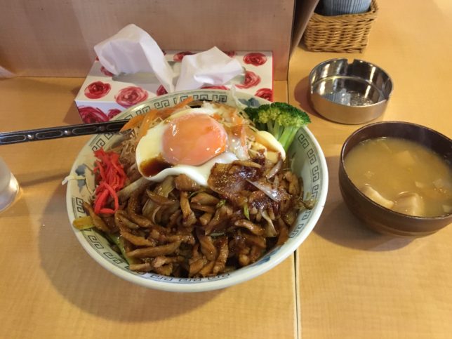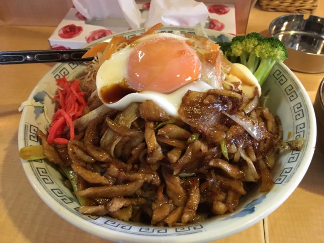 その量からして1合はゆうにあろうかというご飯の上に、豚肉がこれでもかというほど乗りその上に目玉焼きときました。