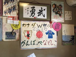 店内を見渡しているとところどころサッカー要素が見られ、4年前のなでしこジャパンのW杯を応援するお手製の装飾や原口元気選手(ハノーファー96)の出身でもある江南南少年サッカー団のポスターなども貼られています。