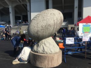 8月は覆いの中にあったこのラグビーボールのモニュメントも、ちゃんとあるべき場所に戻ってる。