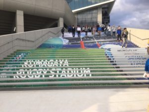人が登っていますが、階段にもラグビーワールドカップがこの地で行われることを示すアートがなされています。