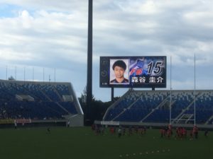 トライ成功で一挙に5点をつかんだパナソニックですが、直後森谷選手が蹴ったペナルティキックは失敗。次こそ地元でいいところ見せてくれよ!