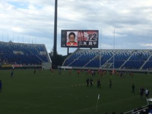 選手紹介時にもその旨アナウンスがされ、スタンドからは拍手も湧き上がりました。