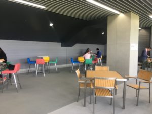 このコンコース、奥に道路につながるスロープがありケータリングカーを入れることもできます。他にも休憩や食事ができるコーナーがあったりと、そこそこ余裕をもって作られていることがわかります。